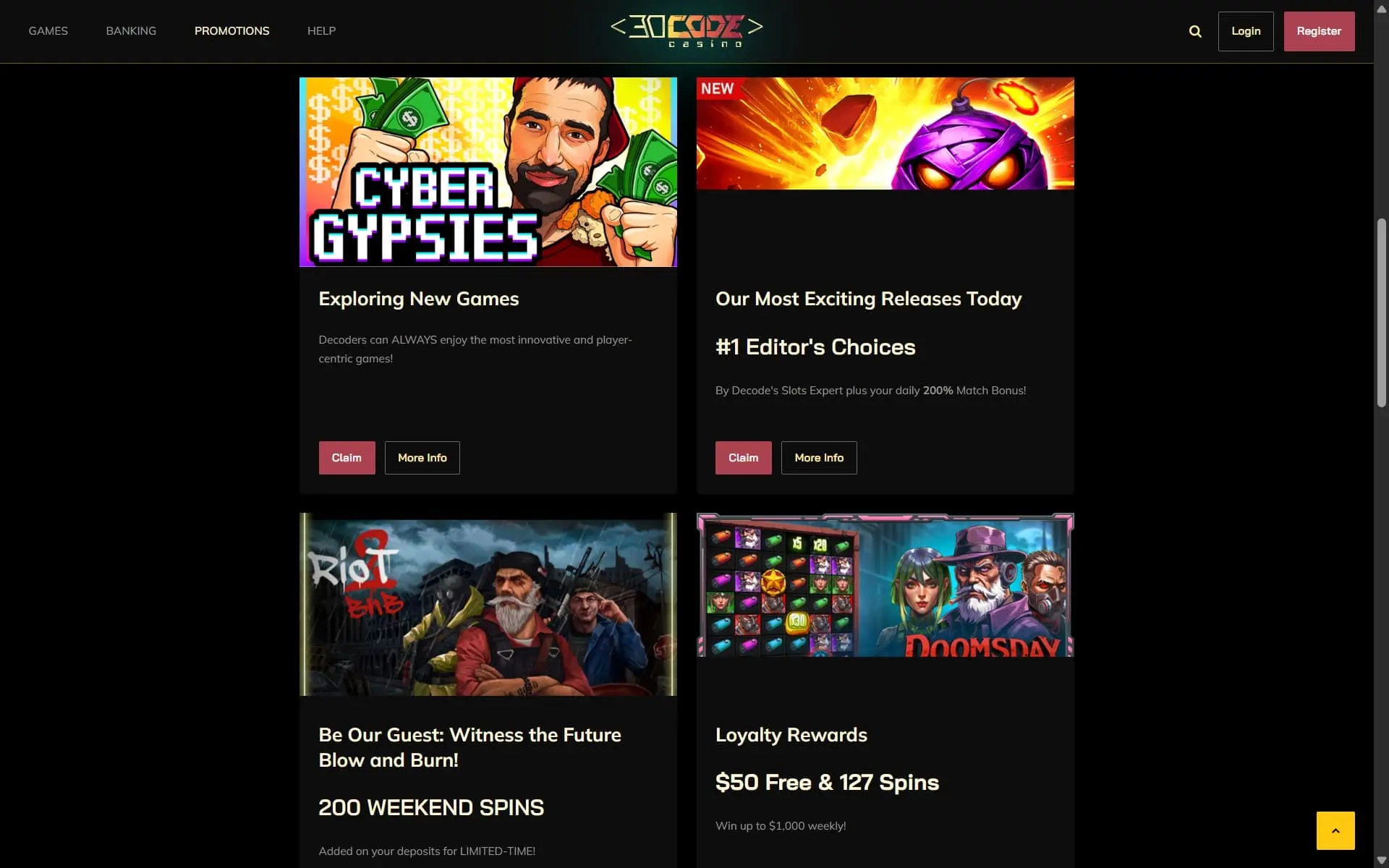 Decode Casino is a 2024-born, crypto-forward venue boasting 2 500+ slots and tables from Yggdrasil, Mascot, BGaming and more. Snag a 111 % bonus up to $1 111 (plus a $10 free chip), then enjoy two-day Bitcoin payouts and 24/7 live chat—with live-dealer tables and progressives already on the roadmap.