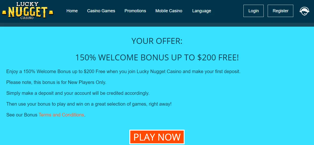 These Lucky Nugget Casino promotions will only be available seven days after registration. The bonus amount you received is subject to a 200x wagering requirement.