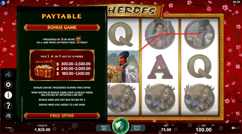 108 Heroes slot is build on Asian theme, but you will easily meet details of Ancient, Battle, Chinese topics as well. Surely, in case you are keen on at least one of previously mentioned slot machine themes – experience from exploring all features of this slot machine will be really remarkable.