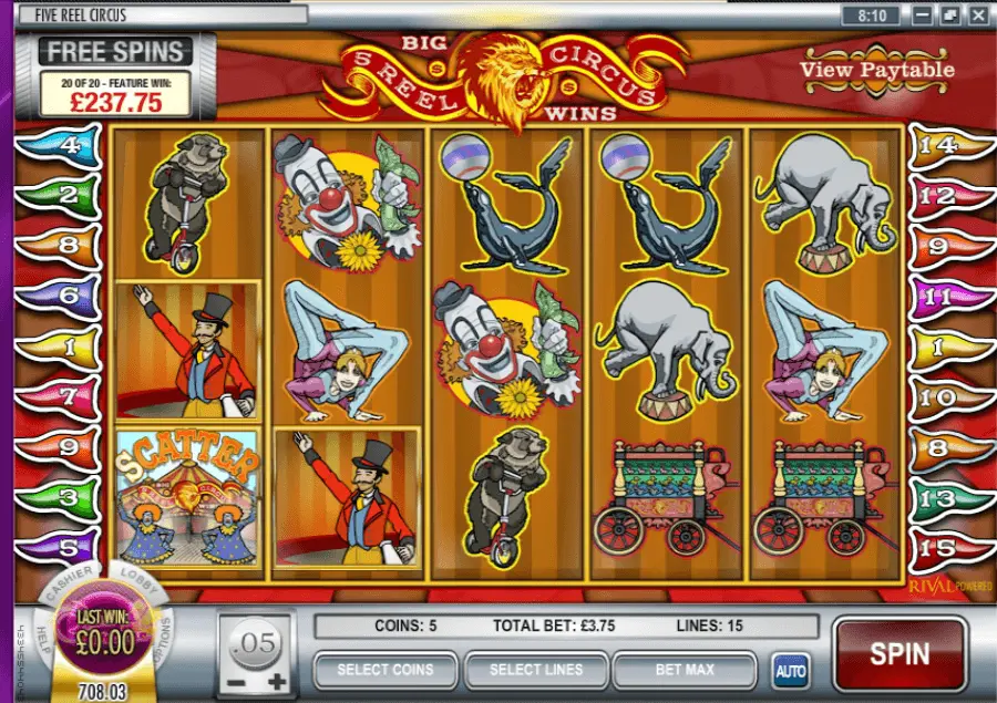 Clearly, it’s our duty to talk about Rival in this 5 Reel Circus slot review 2026. Mentioned gaming software provider produces exclusive real money play online slot machines. For that reason, assuming that you go through for 5 casino to play – check for logotype at the bottom of casino page.