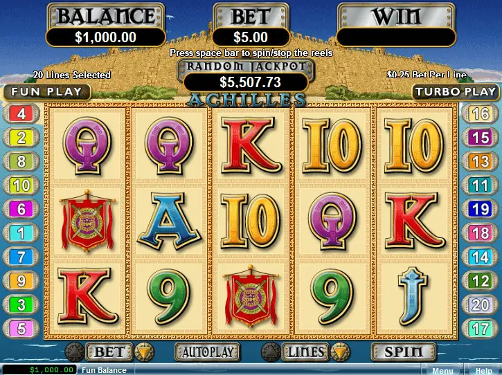 Achilles slot is a well-established online slot machine with a progressive jackpot, offering 5 reels and 20 paylines. Its launch in 2012 makes it a trusted and reliable choice for casino enthusiasts.