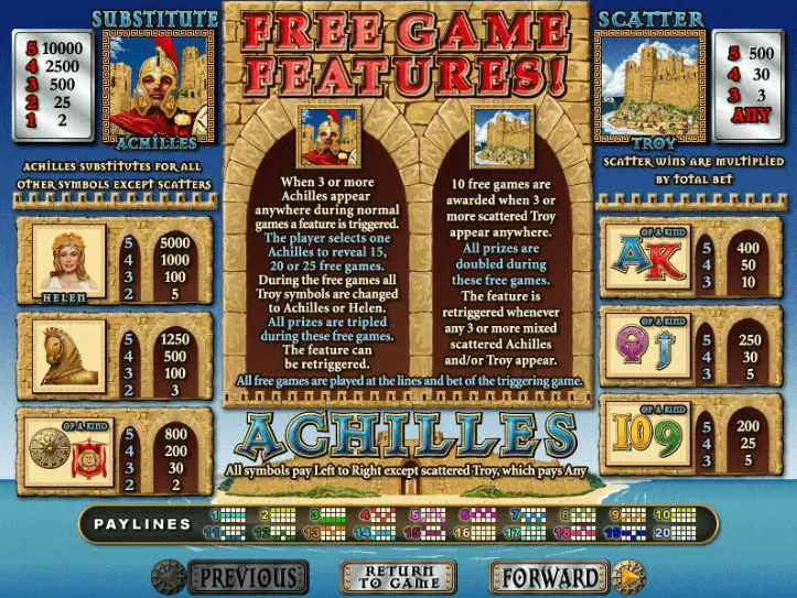 Take a moment to explore our comprehensive Achilles slot review and discover the captivating features of this engaging game, which encompasses themes of movies, TV shows, ancient history, and epic battles. The inclusion of these popular themes ensures that players are immersed in thrilling moments that resonate with their interests.