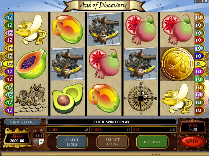 Age Of Discovery slot is a 5-reel as well as 25 pay-line video slot, launched in 2006. Certainly, online game could be labeled as old and very trusted.