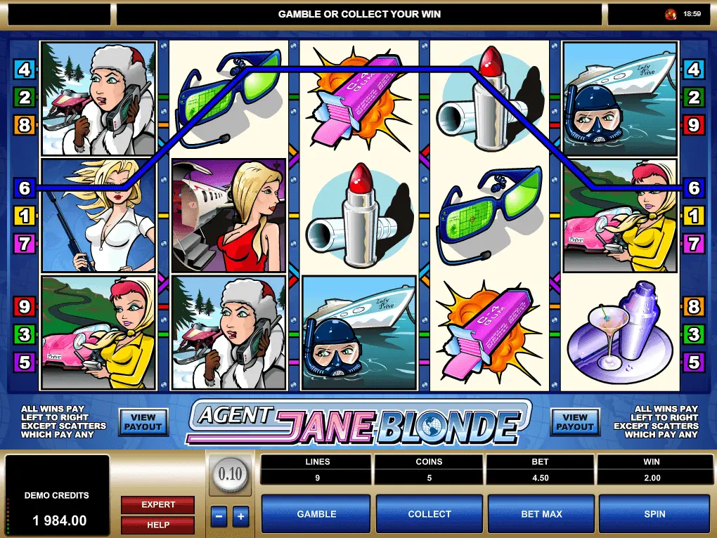 Agent Jane Blonde slot has 5 reels as well as 9 pay-line video slot, made in 2008. Certainly, game must be labeled as established.