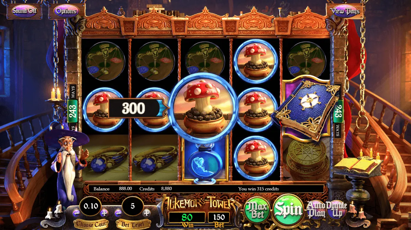 Alkemor’s Tower slot has 3 reels as well as 243 pay lines video slot machine, created in 2015. Surely, game can be labeled as new and modern.