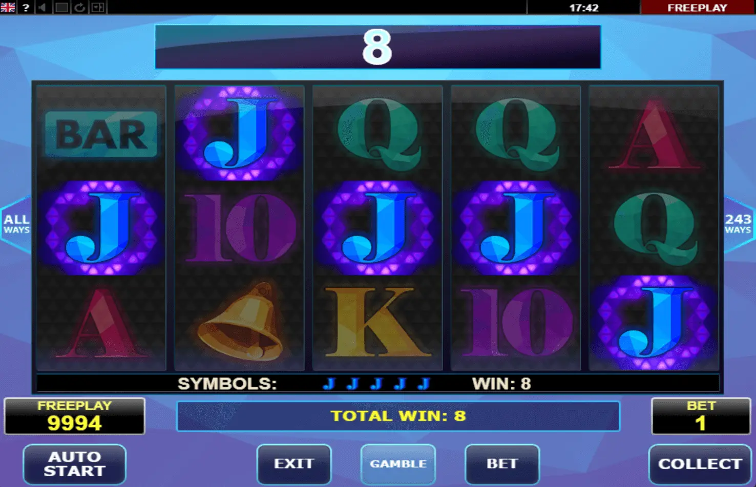 All Ways Win slot is a 5-reel and 243 pay lines video online slot, made in 2017. Definitely, game should be called as new and modern.