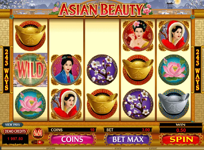 Asian Beauty slot is a 5-reel game from Microgaming offering 243 ways to win and reach up to the jackpot of 200. The minimum coin size to bet on the game starts from 0.01 and goes up to 0.50, and bet between 1 coin and go up to 10 coins. The Return to Player of Asian Beauty is 96.40%.