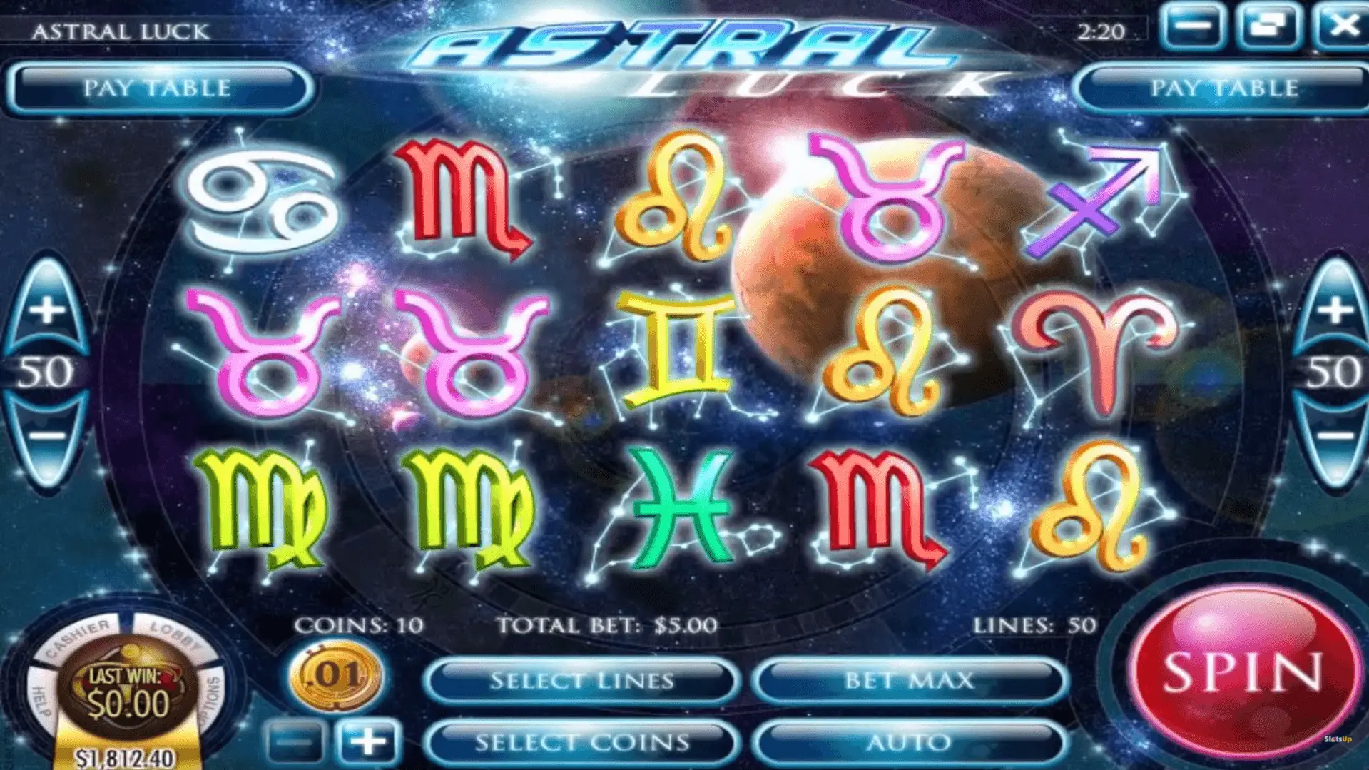 Astral Luck slot has 5 reels and 50 paylines video slot, launched in 2012. Certainly, casino game can be named as old but gold.