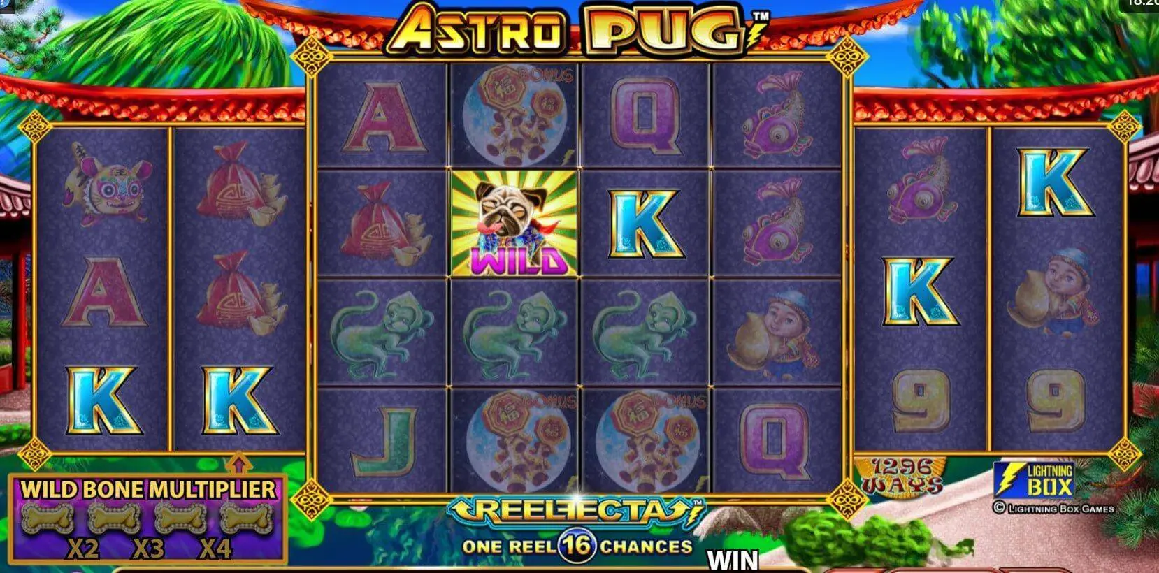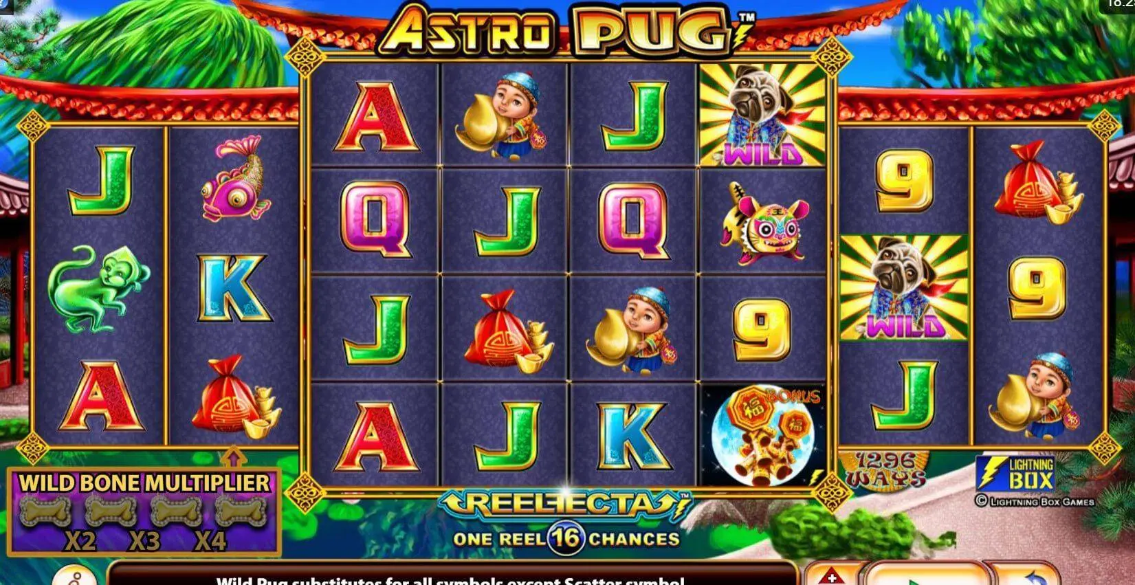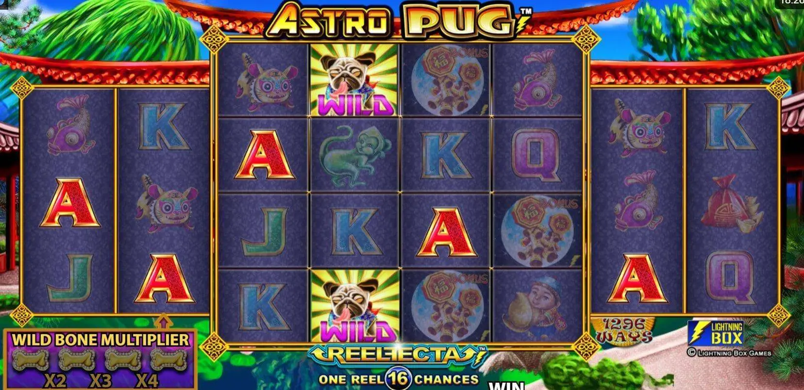 Astro Pug slot has 8 reels as well as 1296 pay-line progressive online slot machine, created in 2018. Surely, casino game can be labeled as fresh and beautiful.