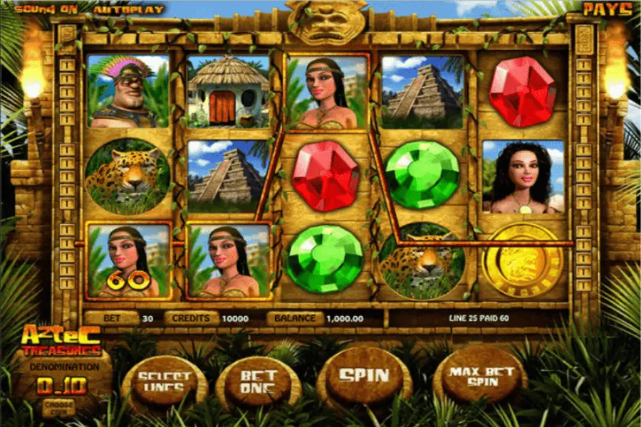 Aztec’s Treasure slot grounded on Adventure thematic, but you will easily detect aspects from Fantasy, Queen, Gold, Battle, Cartoon thematics too. Clearly, if you take delight in any of recent slot machine topics – time spent on exploring all features of this online slot will be really famous.