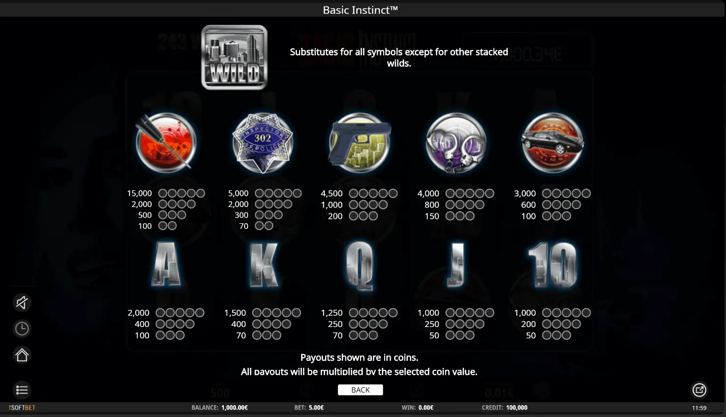Basic Instinct slot has 5 reels and 243 pay lines video slot, launched in 2013. Clearly, game can be named as established.