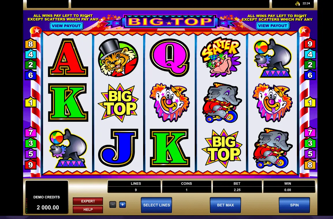 Big Top slot is a 5-reel as well as 9 paylines video slot, launched in 2016. Undoubtedly, online game should be named as new but reliable.