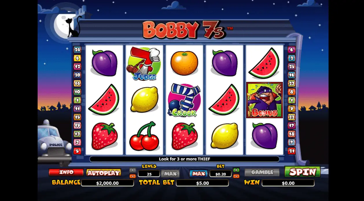 Launched in 2016, Bobby 7s slot is a modern fruit-themed video slot with 5 reels and 25 pay lines. It boasts high-quality video effects and a big population of slot fans. Microgaming, a leading provider of exclusive real money play slots, developed this slot game. Look for the Microgaming logo at the footer of the casino site if you want to play Bobby 7s slot.