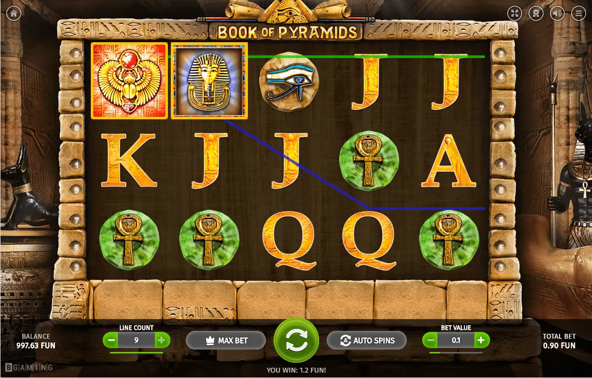 Book Of Pyramids slot is a 5-reel as well as 9 pay-line video slot, launched in 2014. Surely, online game can be named as established.
