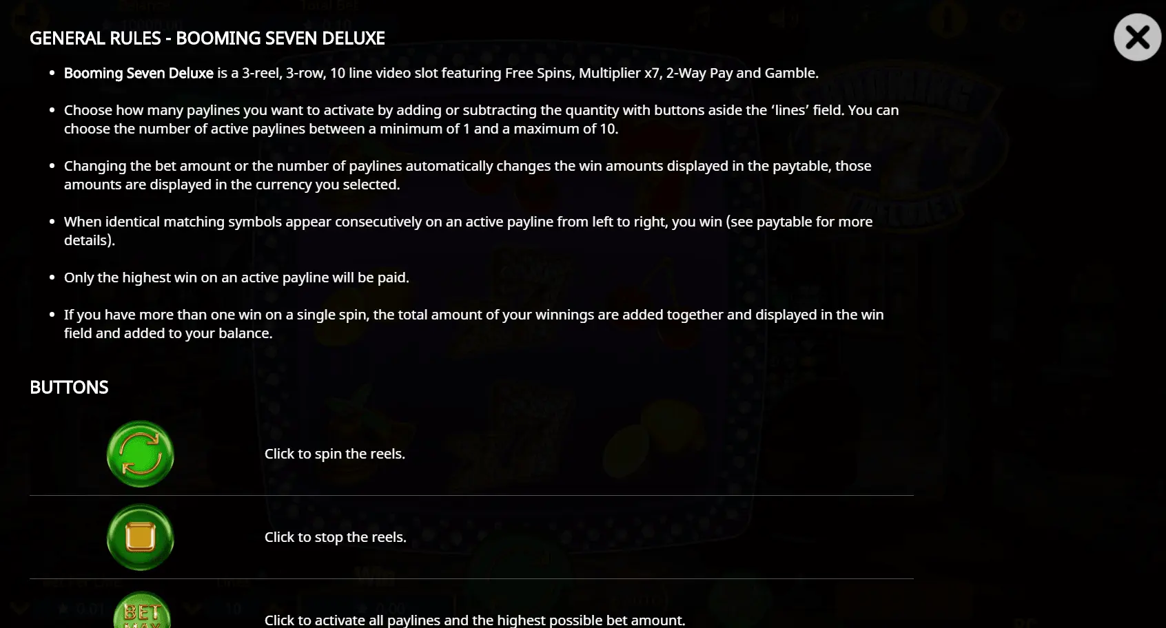 Booming Seven Deluxe slot is a 3 reels and 10 pay lines progressive online slot machine, created in 2016. Definitely, game could be named as recent and great.