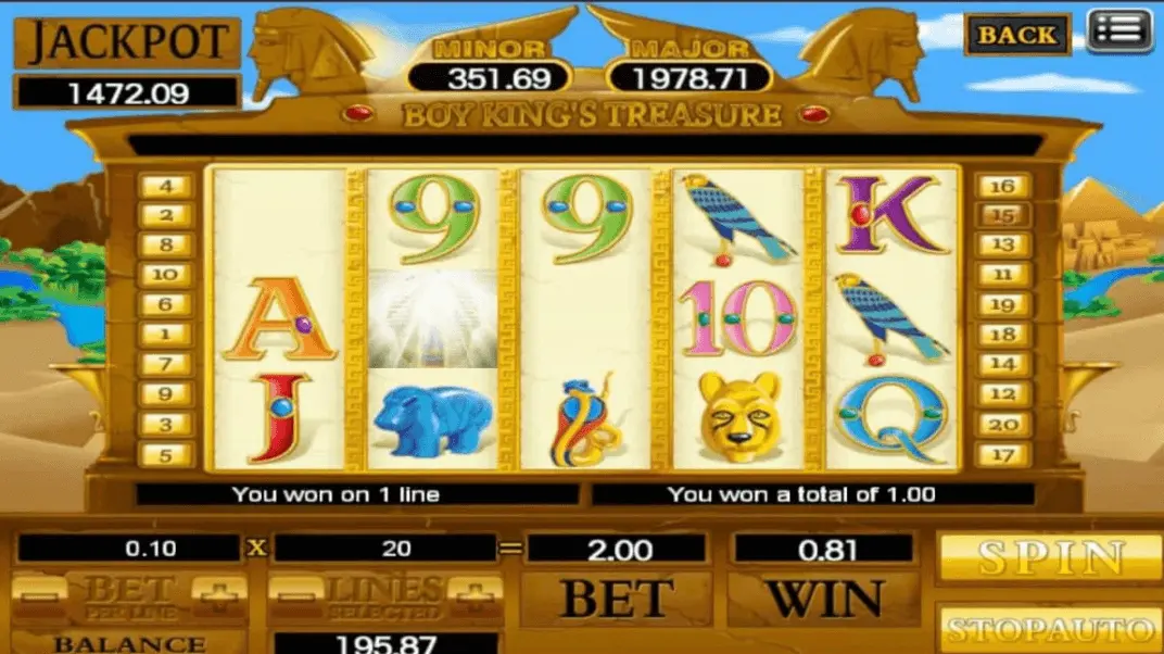 Boy King’s Treasure slot stands on Ancient theme, though you will be able to detect details of Egypt, Pharaoh, Fantasy, Adventure topics as well. Definitely, in case you take delight in some of recent online slot thematics – experience you get from discovering all features of this slot will be really phenomenal.