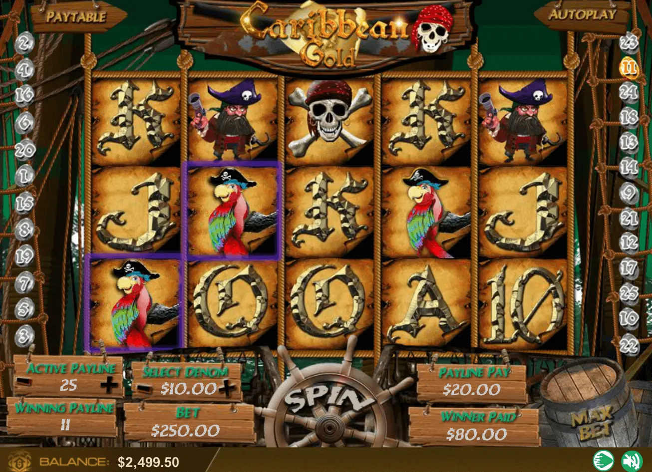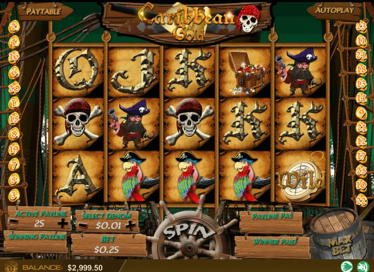 Caribbean Gold slot is a 5-reel as well as 25 pay lines video online slot, launched in 2018. Clearly, casino game could be called as fresh and beautiful.