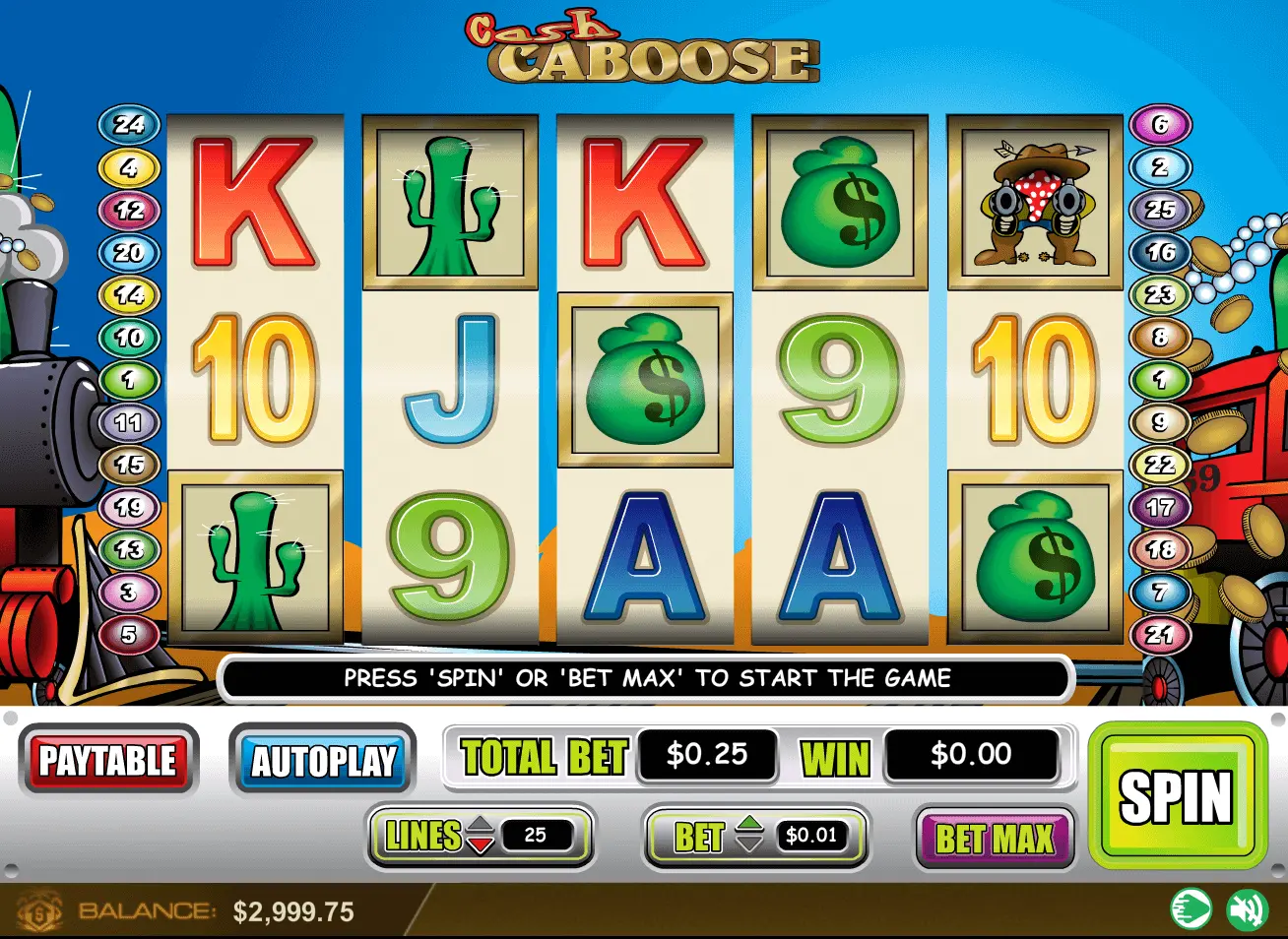 Cash Caboose slot is a 5-reel as well as 25 paylines video online slot, launched in 2015. Surely, game must be marked as new and modern.