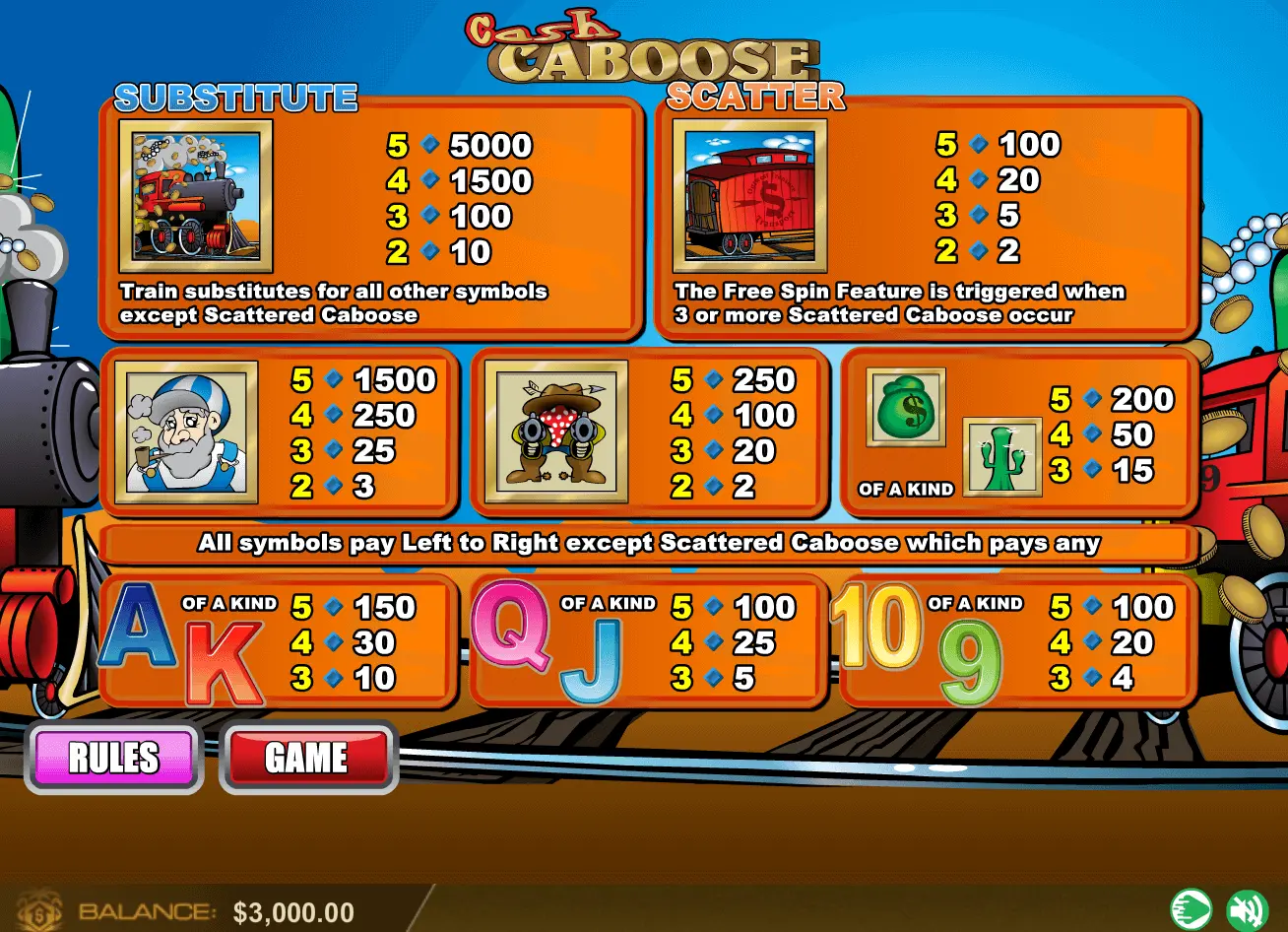Take pleasure in the real money play with $4000 Free welcome bonus for Cash Caboose slot.