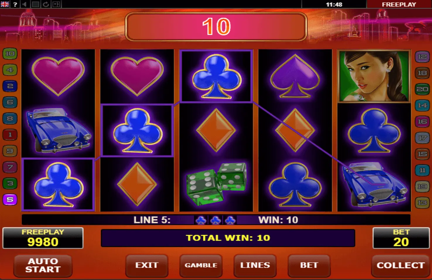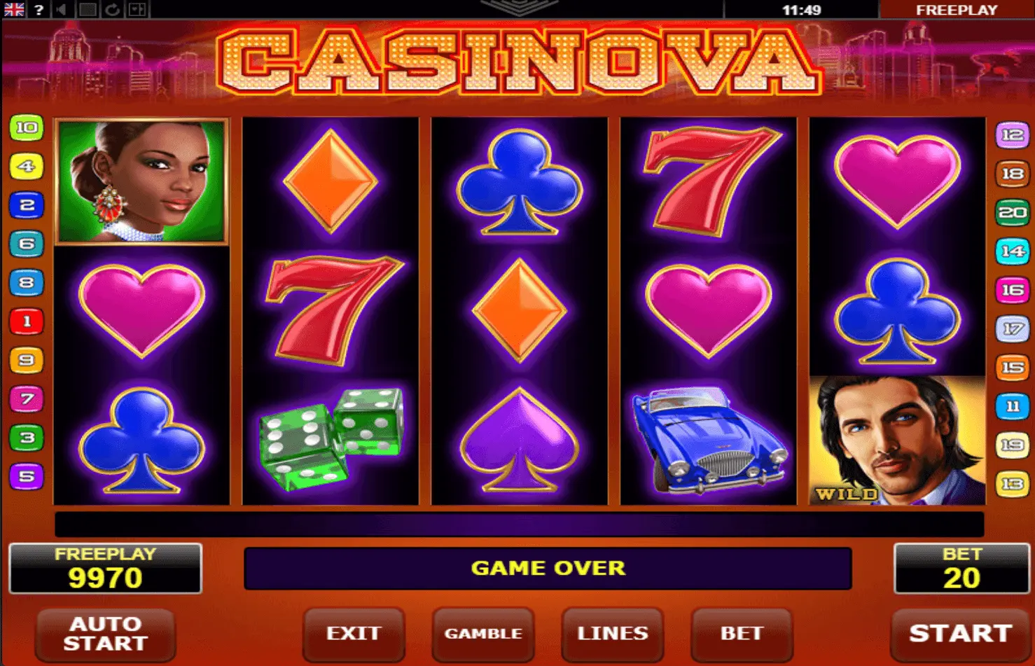 Casinova slot has 5 reels as well as 20 paylines video slot machine, launched in 2014. Certainly, game could be named as established.