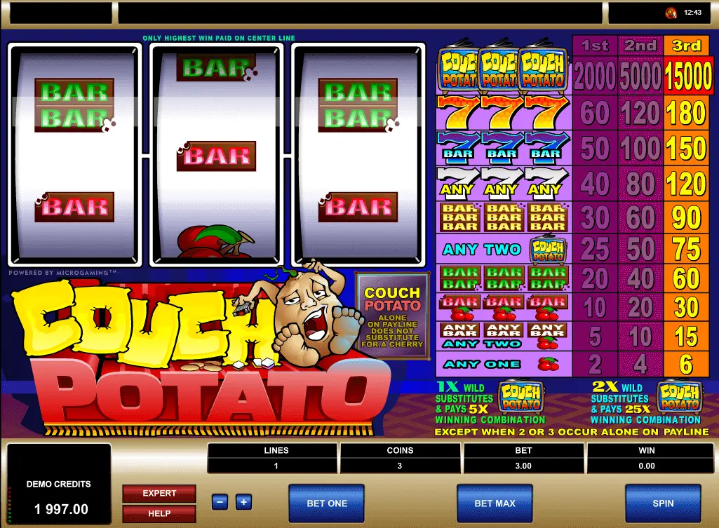 Couch Potato slot is a 1-reel and 3 pay-line video online slot, launched in 2015. Surely, casino game must be marked as new but reliable.