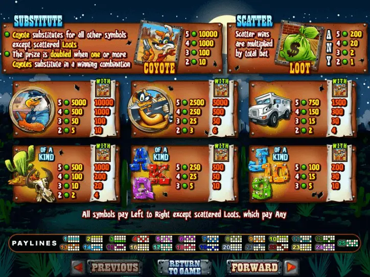 Coyote Cash slot depends on Animal topic, however you will be able to detect elements which belongs to Wild, Cars thematics too. Clearly, if you like some of recent slot machine themes – enjoyment from discovering all features of this slot machine will be completely impressive.