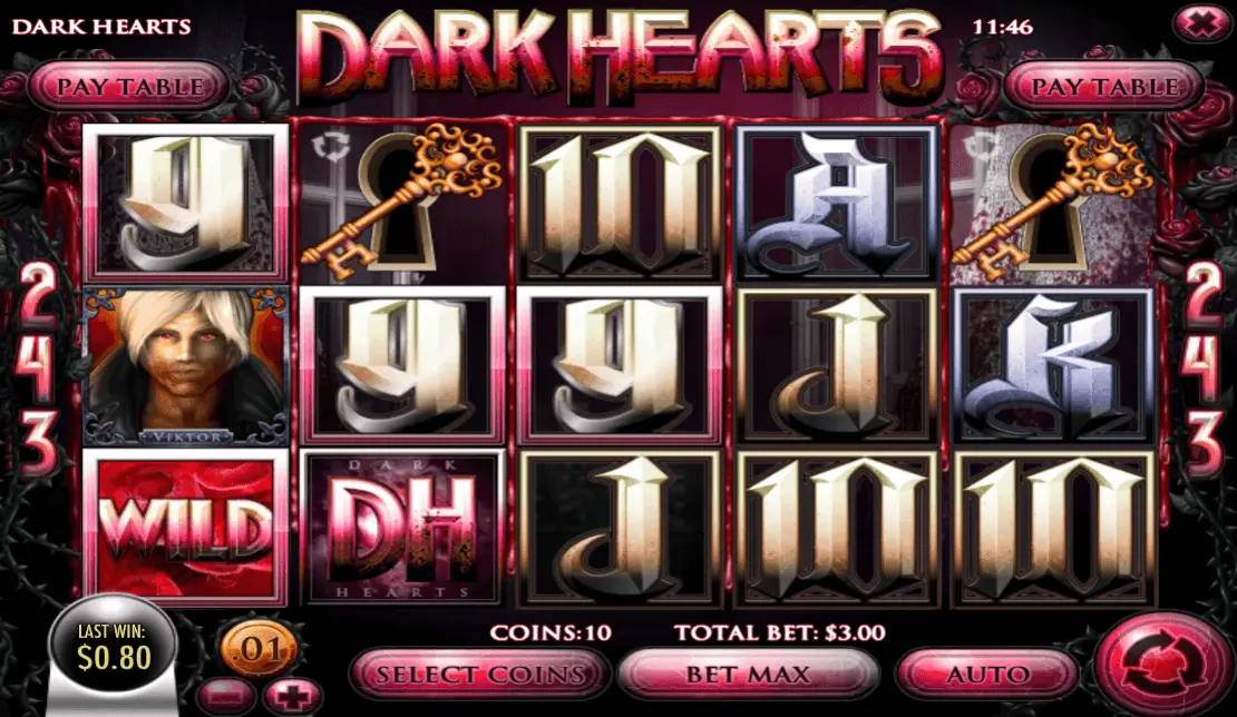 Dark Hearts slot is a love-themed fantasy slot machine game from Rival gaming. The theme features a love story in the era of vampires, which is set up in the infamous love triangle of the characters in a story.