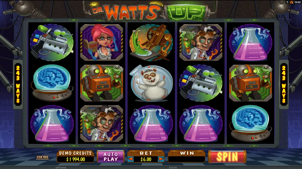 Dr Watts Up slot has 5 reels as well as 243 paylines video online slot, created in 2013. Certainly, online game should be called as old and very trusted.