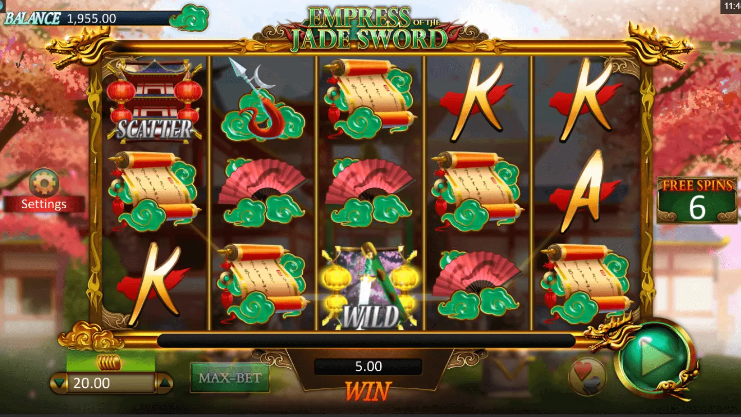 Empress Of The Jade Sword slot has 5-reel and 20 pay lines video slot machine, made in 2017. Definitely, game can be called as new and modern.