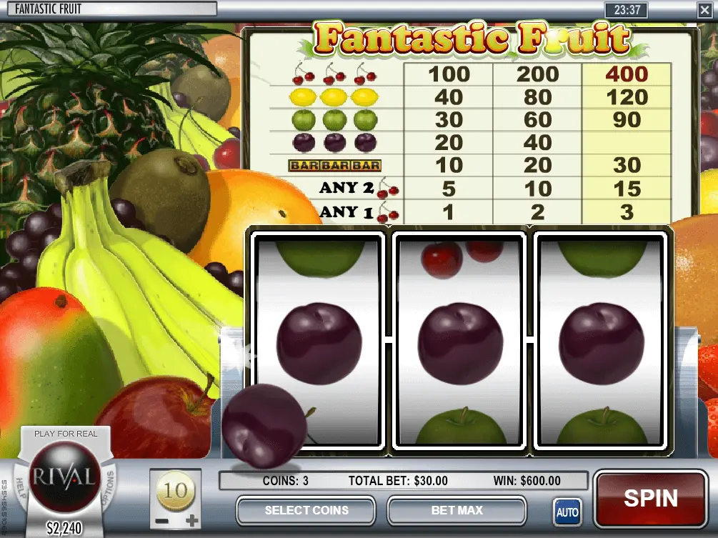 Fantastic Fruit slot game from Rival Gaming is a one-pay line title with 3 reels offering unadulterated fun to the punters. The minimum coin size is 0.01 and the max coin size is 10. The minimum and maximum bet per spin are 1 respectively. The RTP is 95.76% for gaining a jackpot of 100.