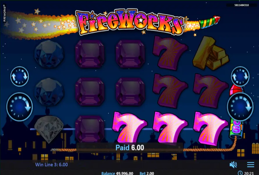 Fireworks slot is based on Party thematic, although you will be able to see elements from Diamond theme themes too. Clearly, if you enjoy some of latter online slot machine topics – experience from exploring all features of this online slot will be totally outstanding.