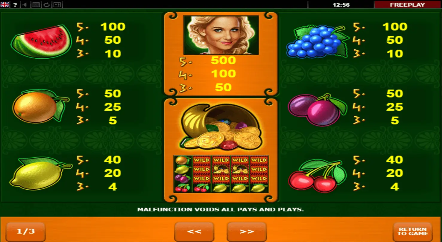 In the end, slot machine has maximum prize which amounts to x500. For example, in case slot player goes with X quantity of money, jackpot can be up to 500 times bigger than bet.