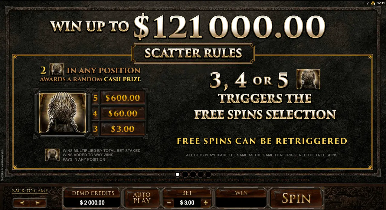 Looking for Game Of Thrones 243 Ways slot free spins deposit bonus 2026? ⚔️ Read our review and get $1000 Free welcome bonus for real money play.