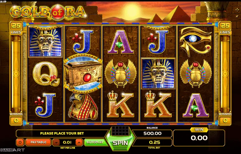 Gold of Ra slot has 5-reel and 25 pay-line video online slot machine, launched in 2015. Undoubtedly, casino game can be labeled as new but reliable.
