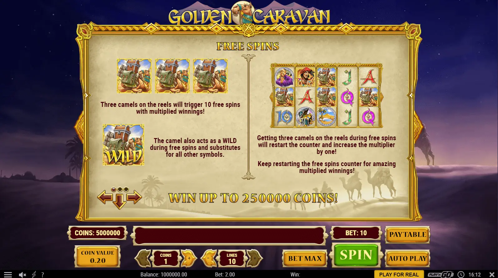Golden Caravan slot has 5-reel as well as 10 pay-line video online slot, created in 2016. Surely, online game must be called as new but reliable.