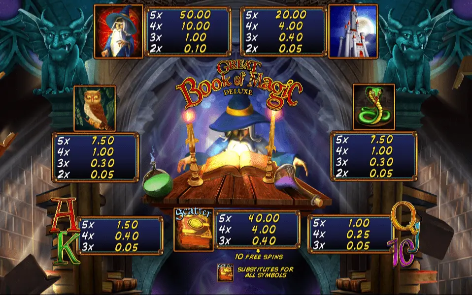 Great Book of Magic Deluxe slot stands on Wizards theme, although you will easily see aspects from Magic, Mystery, Fantasy topics too. Clearly, in case you like these recent online slot machine themes – experience you get from discovering all features of this online slot machine will be simply phenomenal.