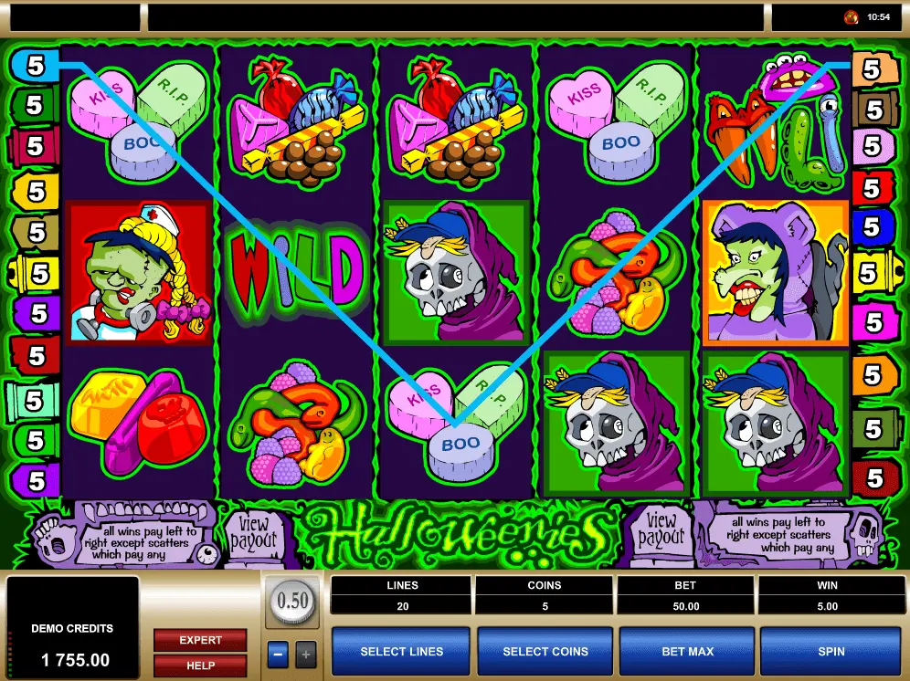Halloween slot has 5-reel as well as 50 pay lines video online slot, created in 2017. Definitely, online game can be labeled as fresh and beautiful.