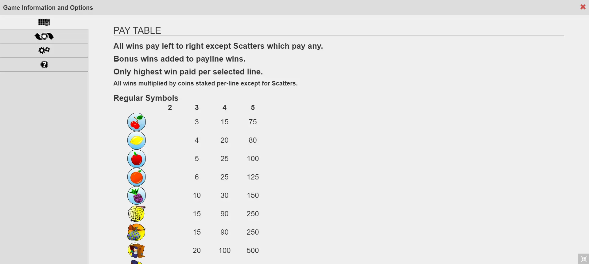 | Paylines: | 15 |