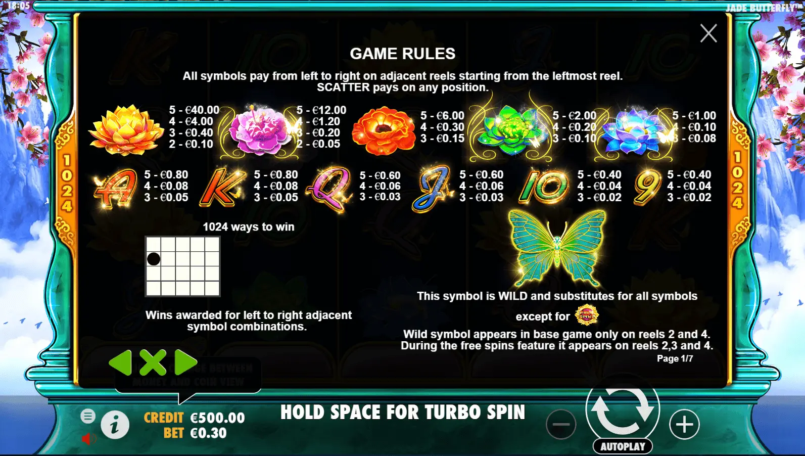 Jade Butterfly slot is a 5 reels and 1024 pay lines video online slot machine, made in 2018. Undoubtedly, online game should be labeled as new but reliable.
