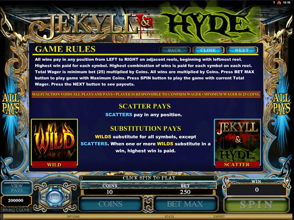 Jekyll And Hyde slot is a 5-reel as well as 243 pay lines video slot machine, made in 2012. Certainly, casino game could be labeled as old and very trusted.