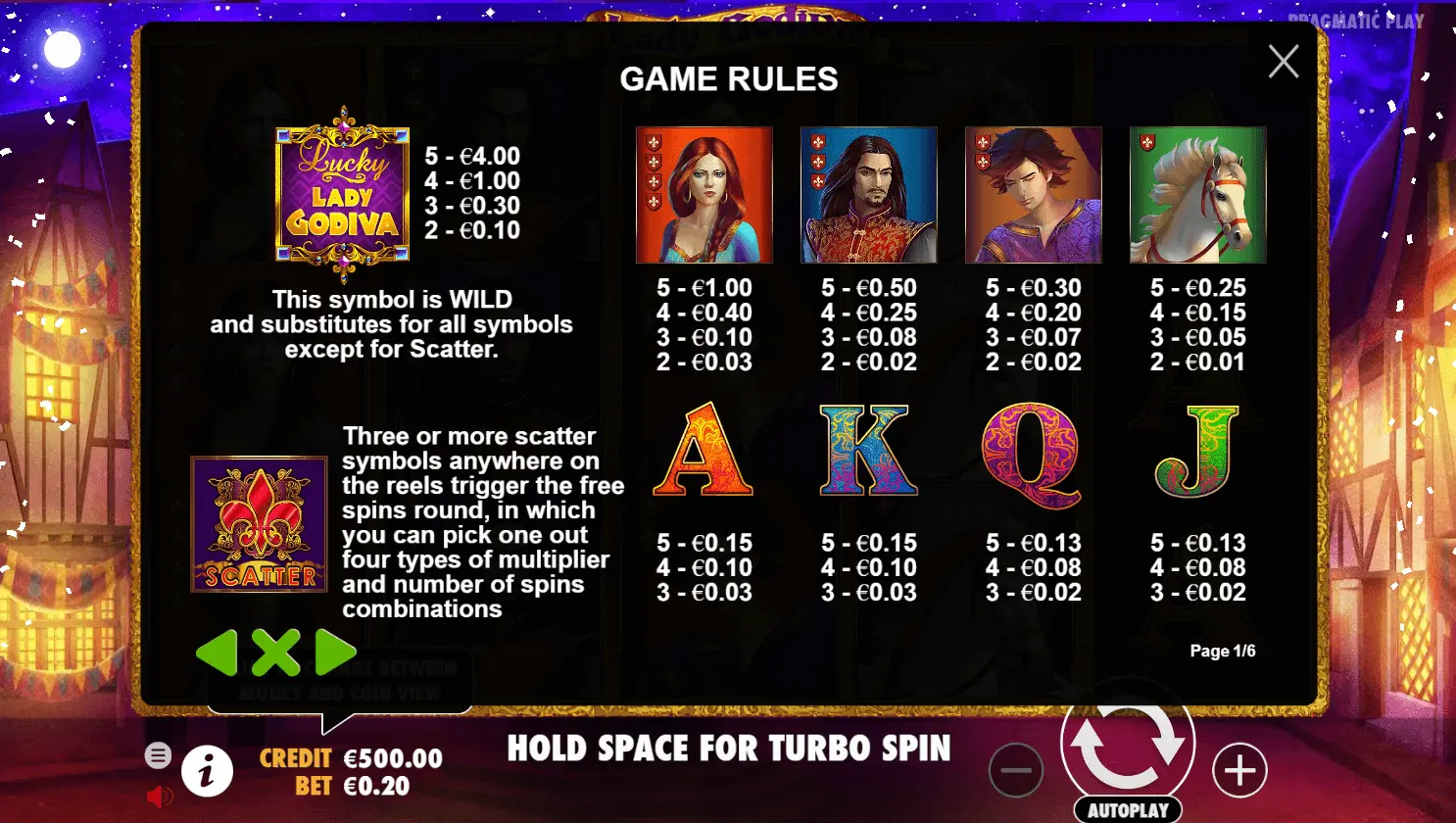 Go through our comprehensive Lady Godiva slot review to figure out more about this entertaining online game which represents Adventure, Fairy Tale, Animal themed slots. Surely, latter thematics for players means heaps of great moments produced by all elements or celebrations akin to themes.
