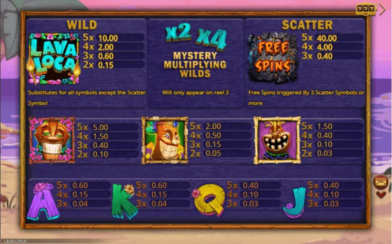 Lava Loca slot is build on Adventure thematic, but you will be able to see components of Journey, Party, Magic thematics as well. Certainly, in case you are fond of these recent online slot themes – experience from exploring all features of this slot will be simply impressive.