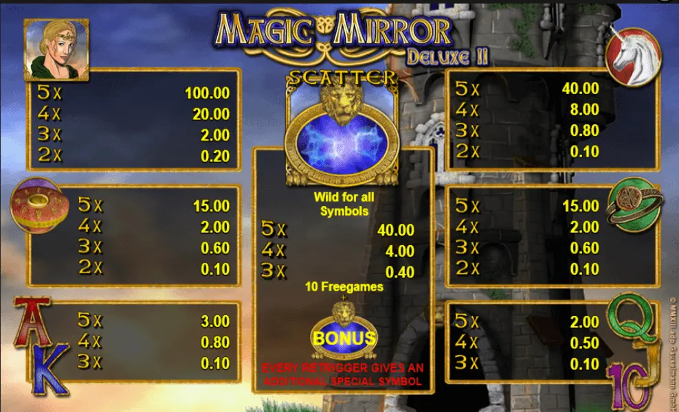 Magic Mirror Deluxe II slot is build on Fantasy topic, but you will easily notice components of Magic theme thematics as well. Clearly, if you derive pleasure from some of previously mentioned online slot topics – experience from exploring all features of this online slot will be completely wonderful.