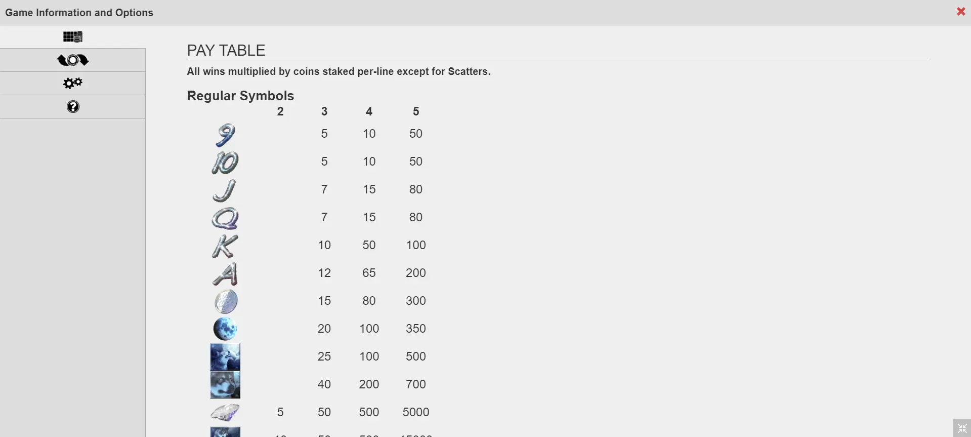 Mystic Wolf slot is a 5-reel and 50 pay-line video slot, launched in 2014. Surely, casino game could be marked as established.