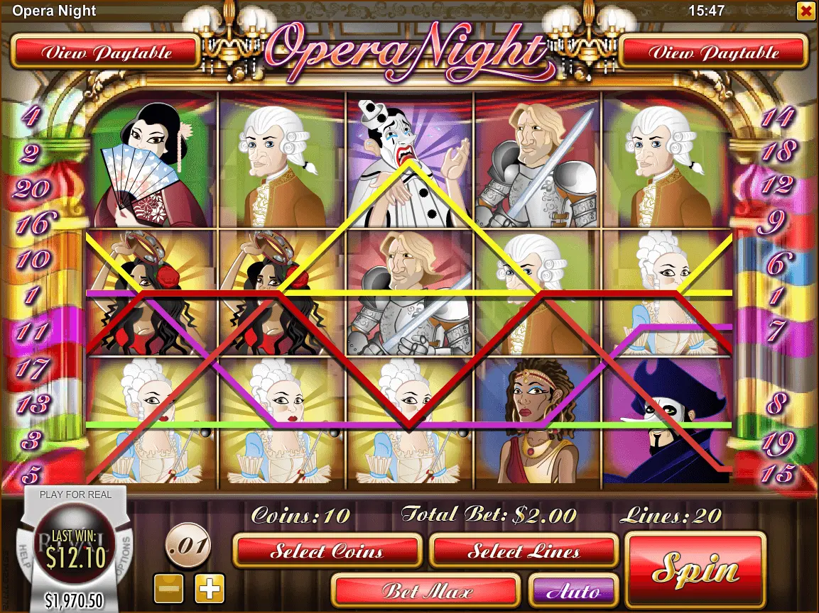 Opera Night slot has 5-reel as well as 20 pay lines video online slot, created in 2011. Certainly, game can be labeled as well-established.