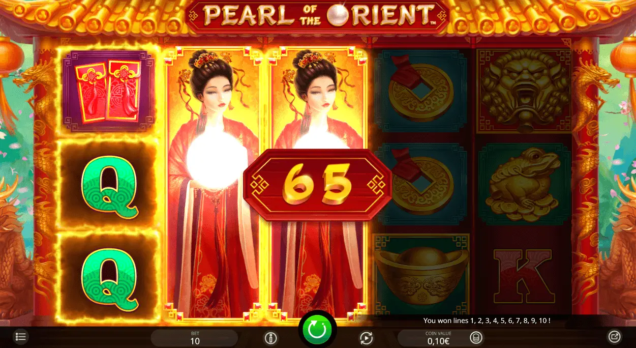 Pearl of the Orient slot is a 5-reel and 10 pay-line video online slot, made in 2018. Certainly, casino game can be labeled as new and modern.