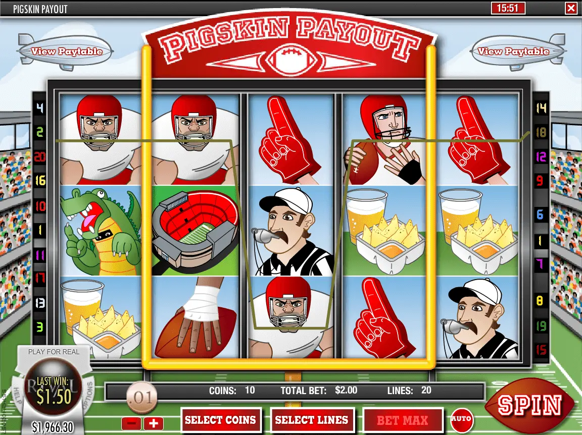 Take pleasure in the real money play with $2,777 Free welcome bonus for Pigskin Payout slot.