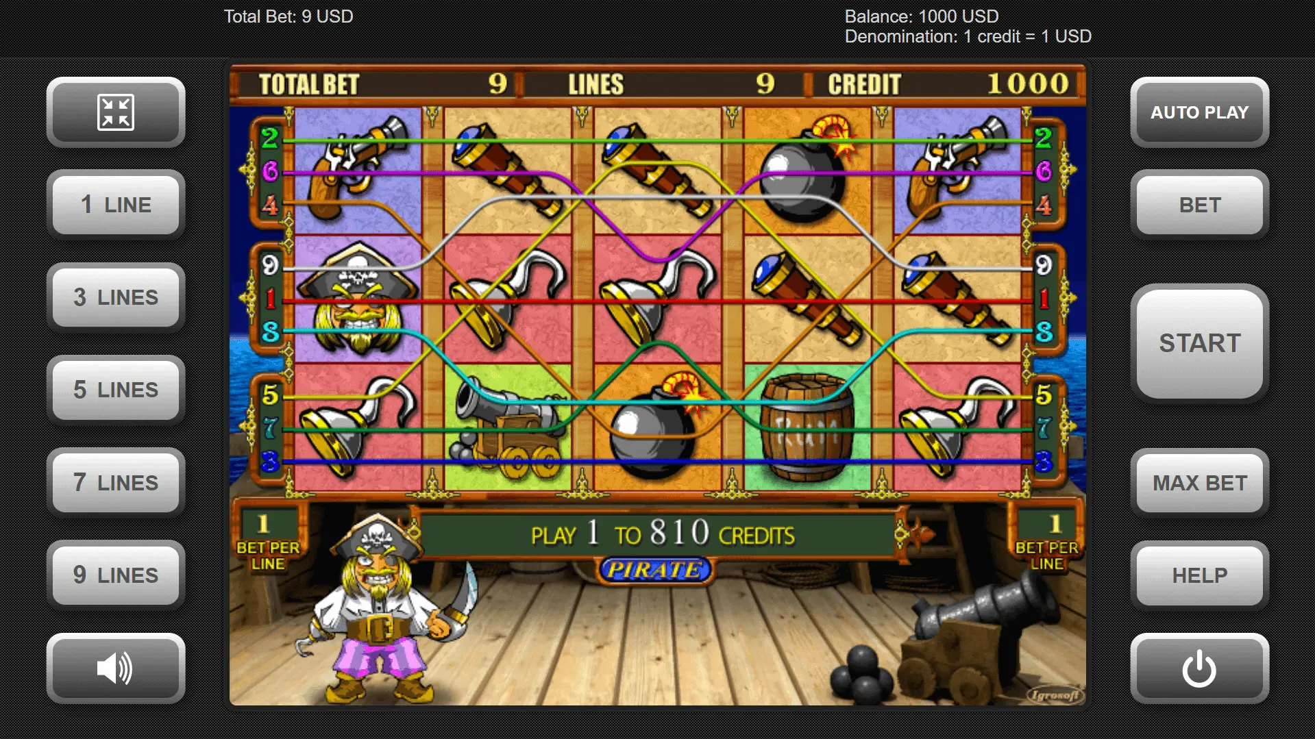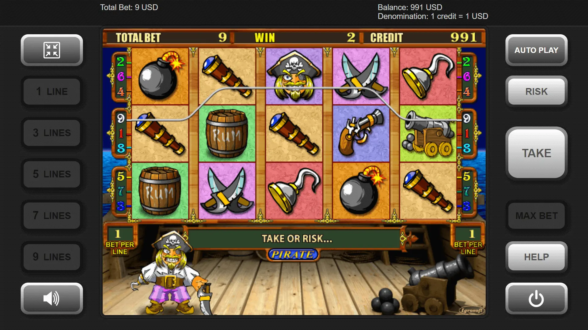 It’s worth mentioning Igrosoft in this review, as they are the provider responsible for creating this unique real money slot machine. If you’re looking for a Pirate casino to play this game, you can find their logo at the footer of the page.