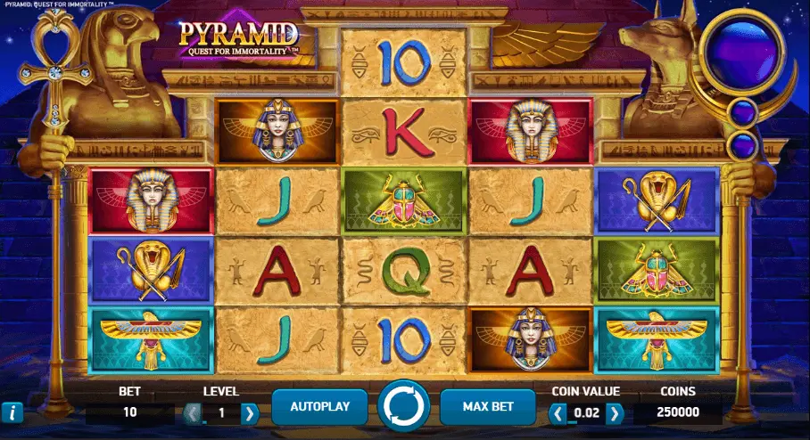 - Although, the game does not have a Pyramid: Quest for Immortality free spin feature, its high volatility can give us a colossal 36000 times of your stake on hand.