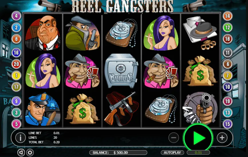 Reel Gangsters slot is one of the entertaining video slots with mafia theme. It gives a real feeling of you getting into the underground world to meet a group of gangsters to plot and implement a bank robbery. In the year 2014, this game was optimized to mobile devices.